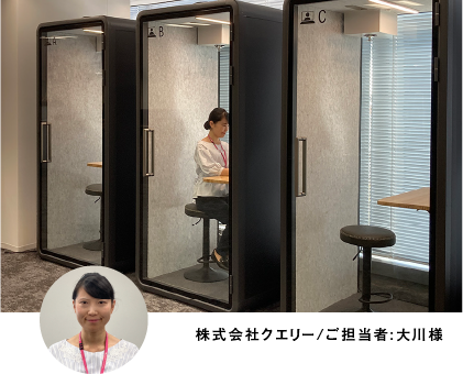 WEB会議室、オフィス面談、商談室、社内会議室や休憩スペースなど、様々なシーンでご活用頂いております。