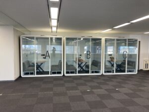 ブースを単なる作業場所と捉えるのではなく、「魅せる空間」として設置することで、オフィスの格がワンランクアップするのです。