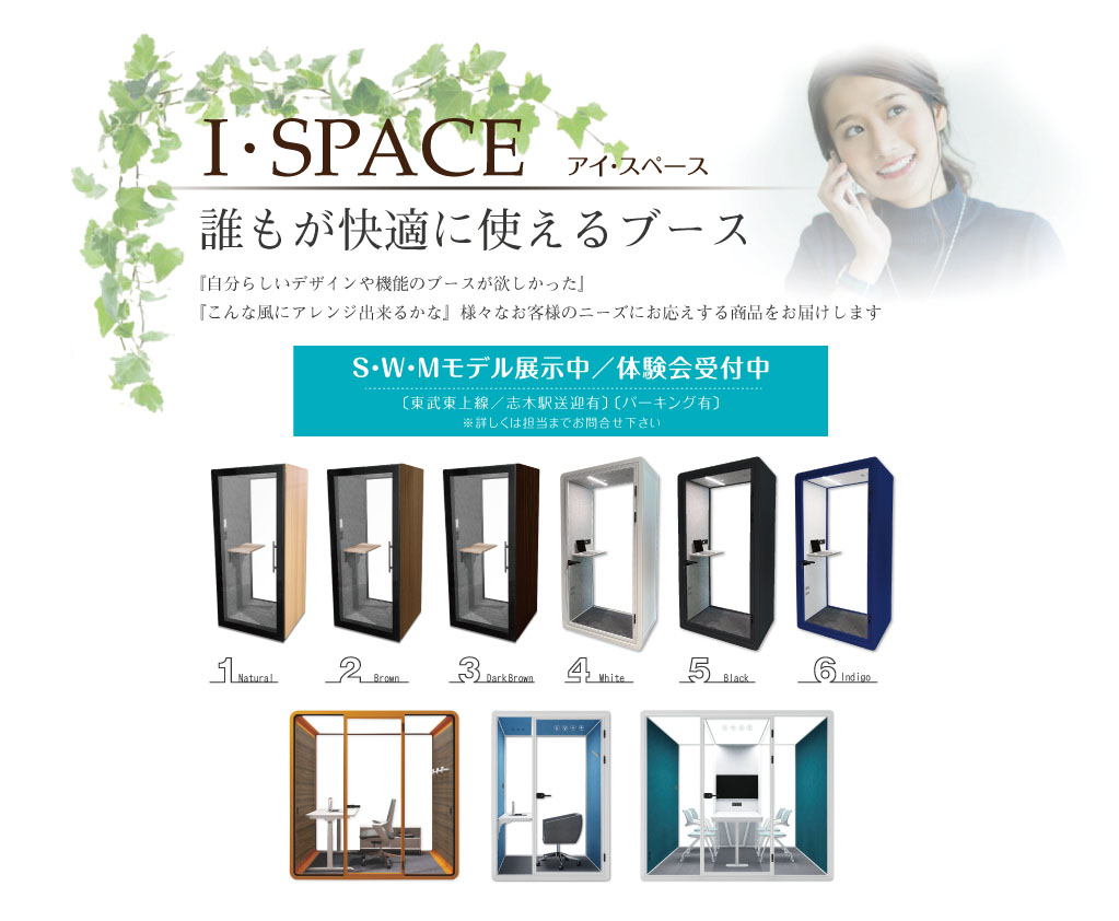 弊社のショールームでは、サイズも機能も異なる6タイプのブースを常時展示中。