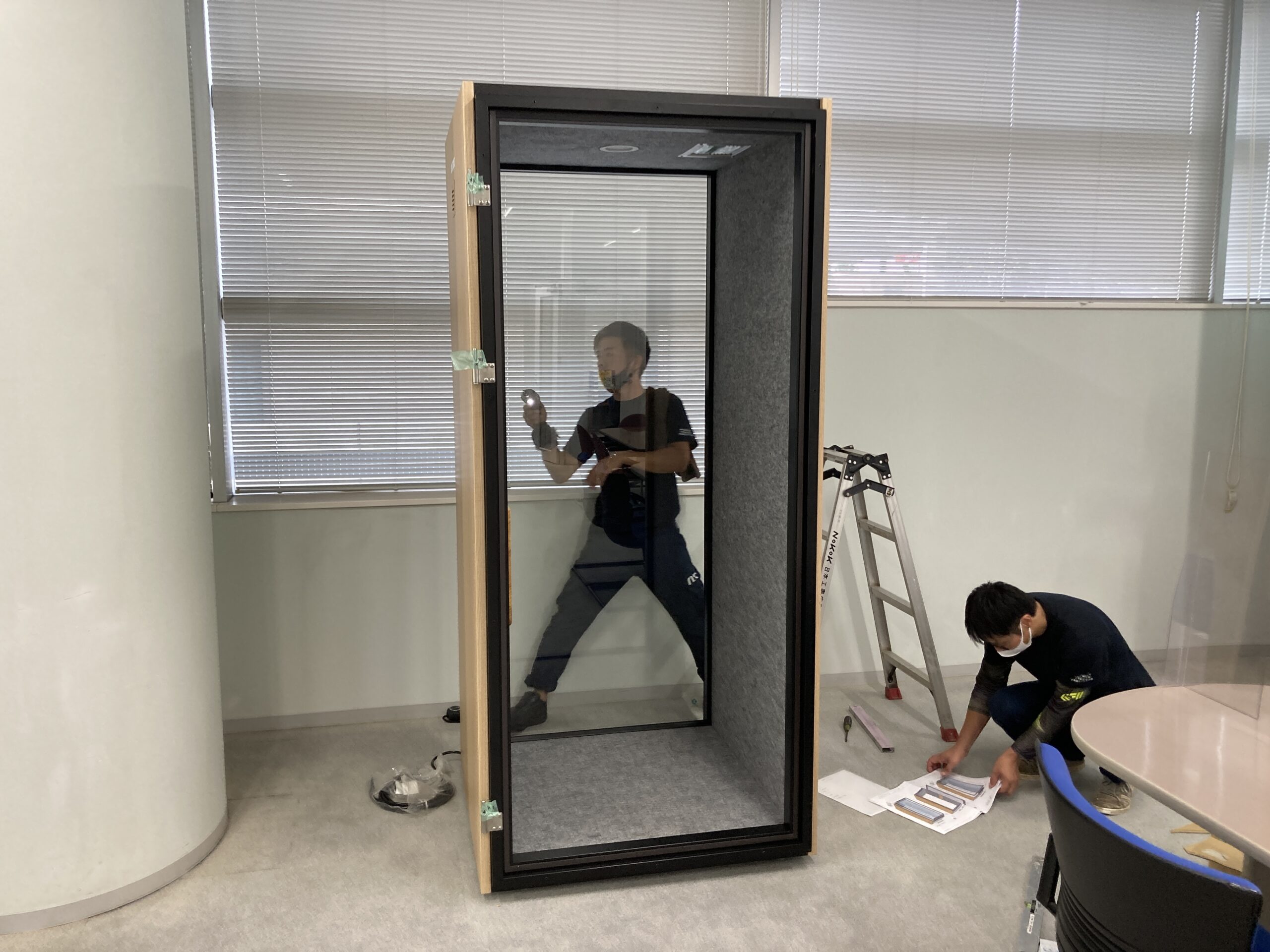 今回は、2台のワークブースを設置いたしました。現地での作業の流れは以下の通りです。