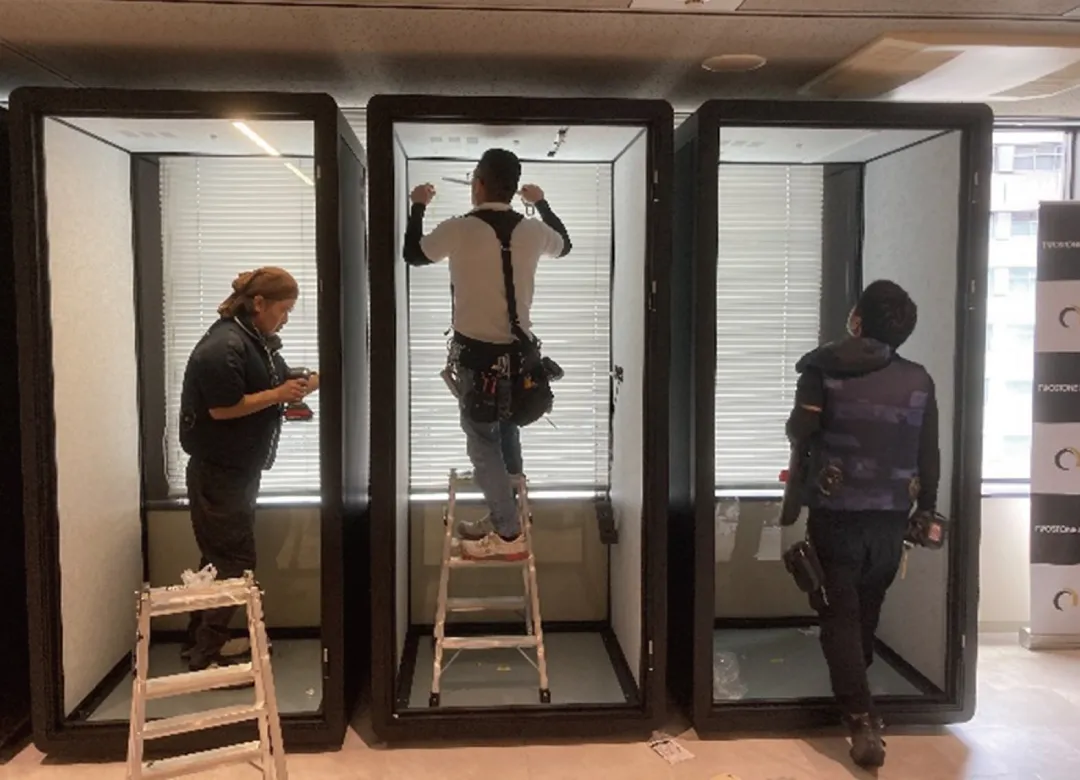 休日の作業など柔軟に対応いたしますので、オフィスにワークブースの設置をご検討されている企業様は、お気軽にご相談ください。
