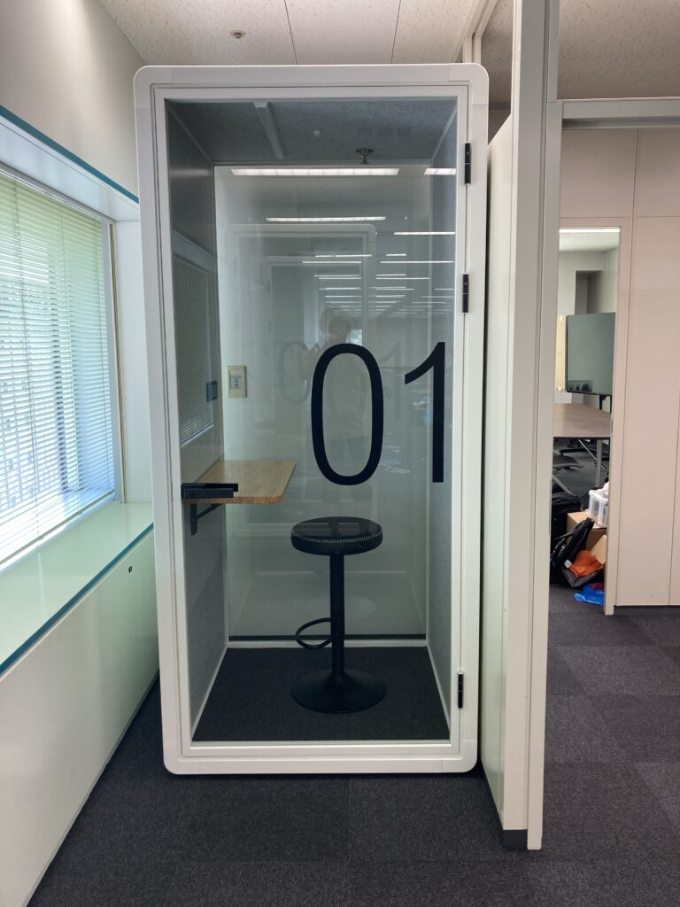 このミーティングブースの導入により、「大きな会議室を使うまでもないが、少人数で会話をしたい」というシチュエーションにピッタリのスペースが確保できました