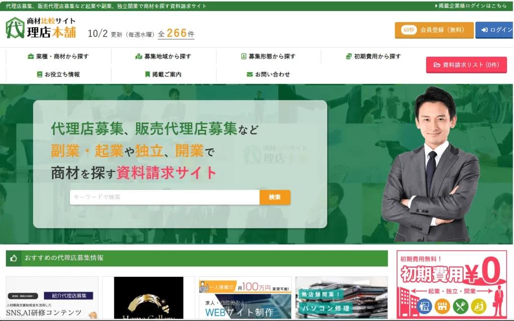 あなたにピッタリのビジネスが見つかる「代理店本舗」