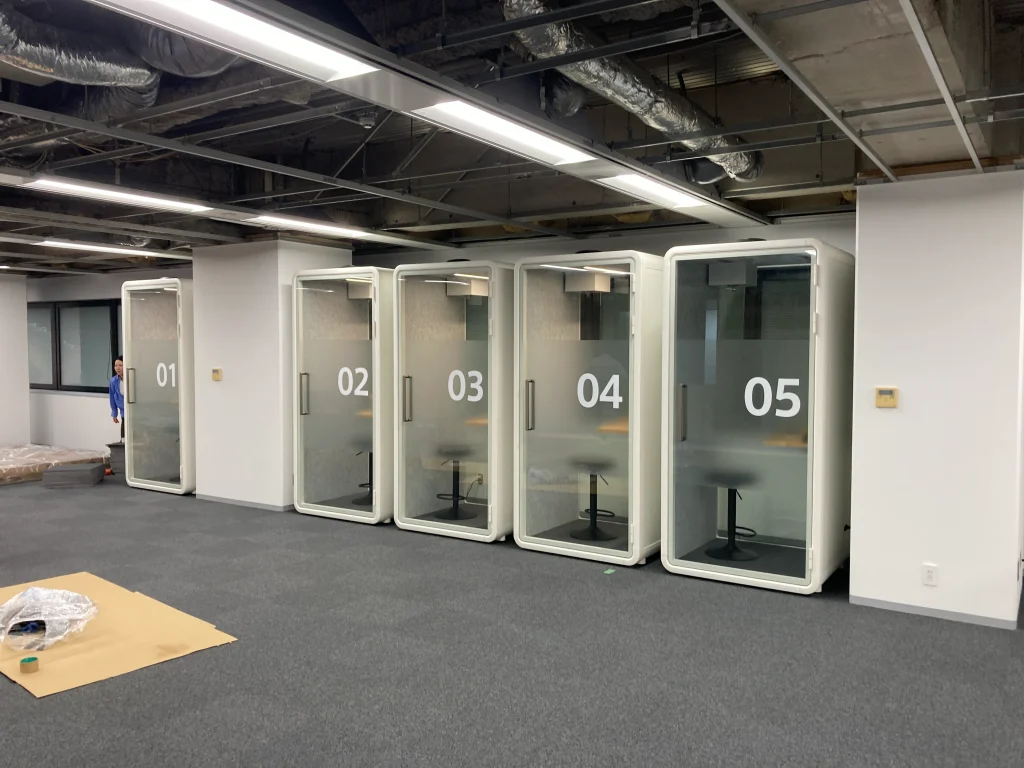 1人用と2人用の個室ワークブース設置・オフィスの会議室不足を解消 「会議室が足りない…」「集中できるスペースが欲しい…」そんなオフィスのお悩み、個室ワークブースで解決しませんか?実際の導入プロセスや活用のメリットをお伝えしま...