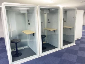 私たちアイスペースでは、1名用から最大8名用まで多様なフォンブースをご用意。導入企業様からは「仕事の質が上がった」「疲れにくくなった」といった声を多くいただいています。