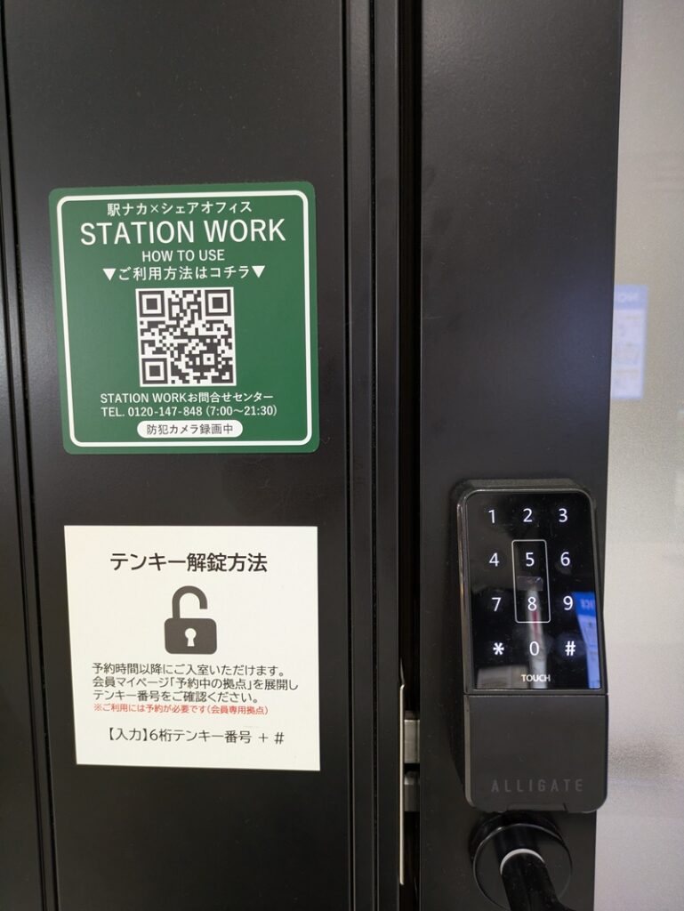 STATION WORKの扉に設置されている機器に(マイページ内に表示されている)テンキーを入力して開錠