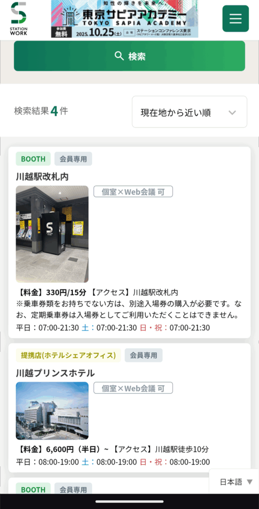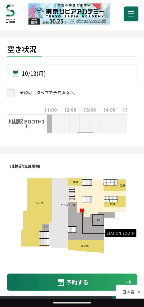 ②今回は川越駅改札内のSTATION BOOTHを選択