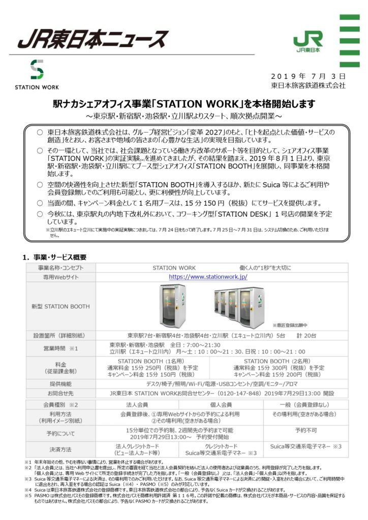 STATION WORKとは、「働く人の”1秒”を大切に」をコンセプトにJR東日本グループが提供するエキナカを拠点としたシェアオフィスサービスです。
